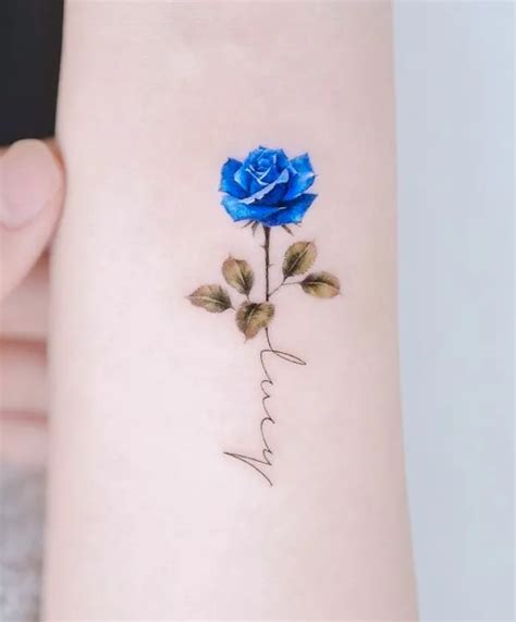 Blue rose tattoos are used mainly to symbolize mystery, the impossible, or the unattainable. The classic romantic love symbolism and undying affection of the blood red rose. It represents accomplishing an impossible deed or treading on an unknown path. This design indicates an impression of a solid and vibrant personality. Blue rose tattoos often represent the imagination, fantasy, impossibility, and.