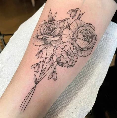 rose flower bouquet tattoo blackwork dotwork peony peonies from www.pinterest.fr