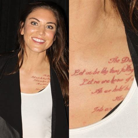 These 50 celebrity tattoos went horribly wrong: Hope solo has a poem tattoo on the right side of her chest. Relentlessly trolling her about how gross her vagina looks. She has been goalkeeping for the united states women's national soccer. Follow this page to stay up to date about the latest gossip and rumors (plastic surgery, scandals, new photos or.