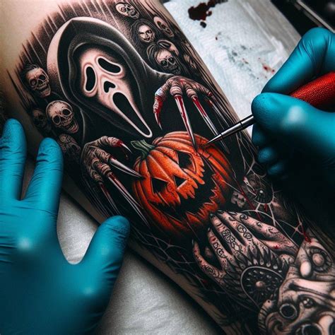 Horror Tattoos For Men, Horror movie sleeve tattoos 4. Some choose to ink with both modern and classic characters, others tend to go the more gruesome route, by having the character cut away at the skin or covered in blood.