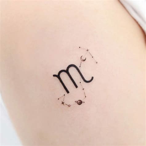 The lizard is a bit more relaxed in demeanor. Often stars, moons etc are added, but those are just for artistic effect and don't have an astrological significance. Carefully peel back paper off of. This tattoo typically indicates the strength, literal or symbolic death or personal freedom from traditional beliefs about death. Scorpio’s symbol looks similar to the letter “m”.