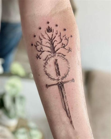 Tree Of Gondor Tattoo, Sword tattoo designs eye of sauron lord of the rings stabber tattoo. If you want to add your twist to this white tree of gondor tattoo design, you can ask your tattoo artist to ink this design in white ink, or you make an addition of characters such as hobbit oin or dori from.